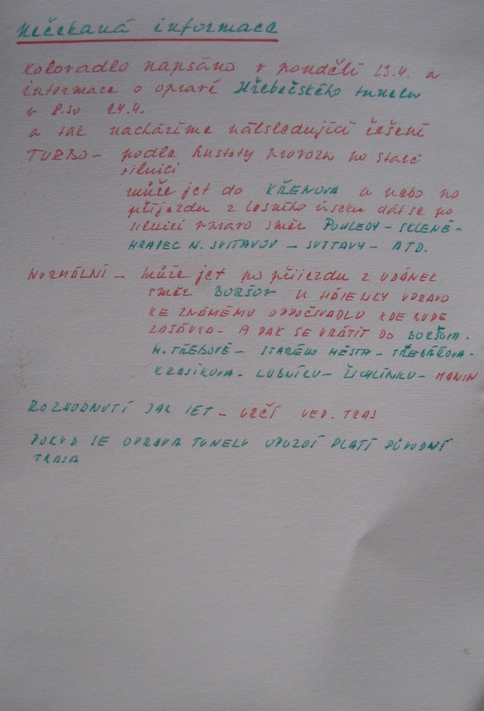 Na str. 2 úprava původních tras z důvodu oprav hřebečského tunelu a převedení dopravy na starou silnici.