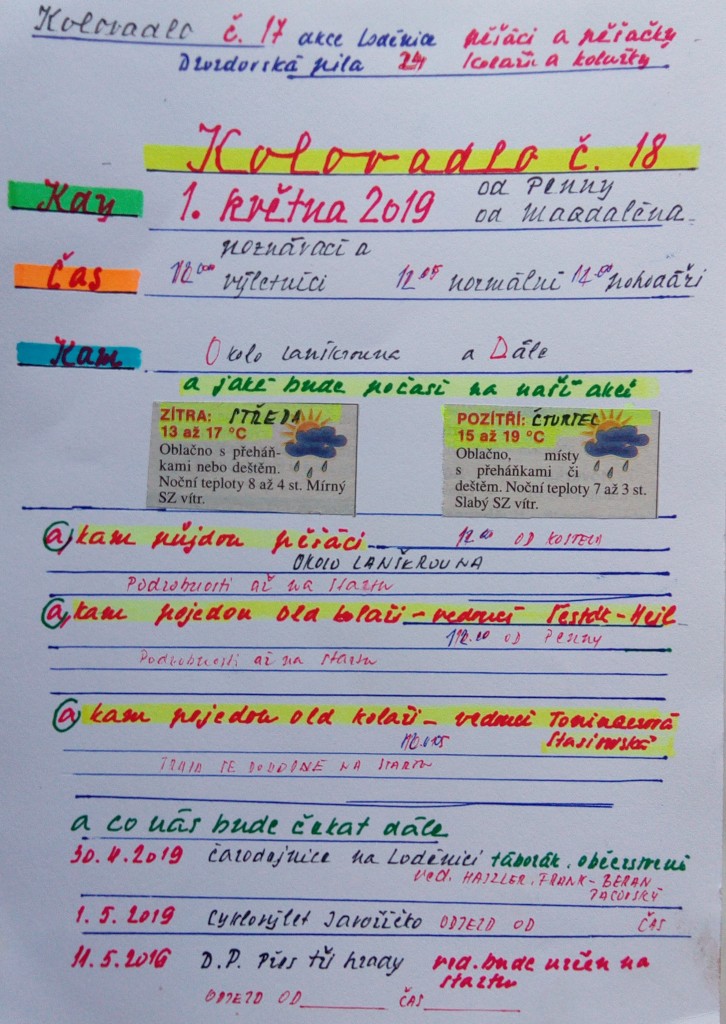 Případný odjezd na tradiční prvomájovou trasu do Javoříčka (110 km) bude dohodnut podle upřesněné předpovědi počasí na loděnici dnes večer při pálení čarodějnic (od 18 hod.)