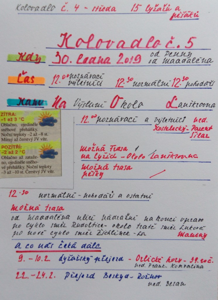 Informace pro běžkaře: trasa v okolí Lanškrouna, sraz ve 12.00 hod. Na Výsluní nad ulicí Škroupovou.