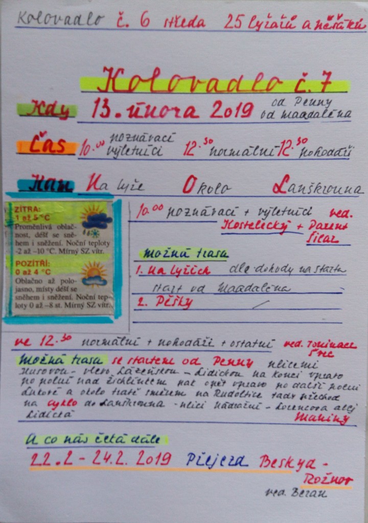 Informace pro běžkaře: odjezd auty v 10.00 od Magdalénského kostela. Cíl cesty bude určen na startu podle sněhových podmínek (Čenkovice. Severomoravská chata nebo Dolní Morava).