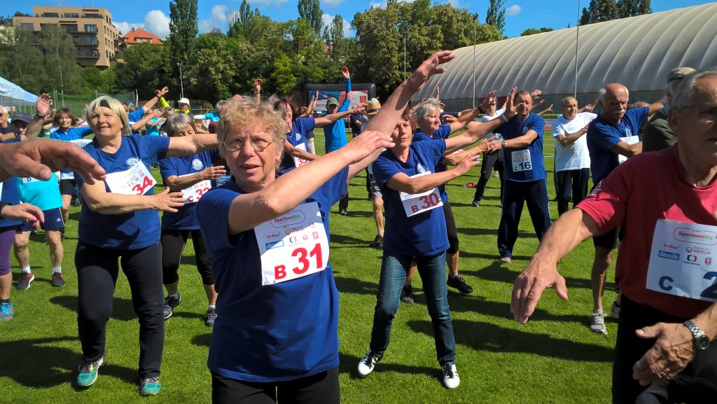 Společná rozcvička všech soutěžících